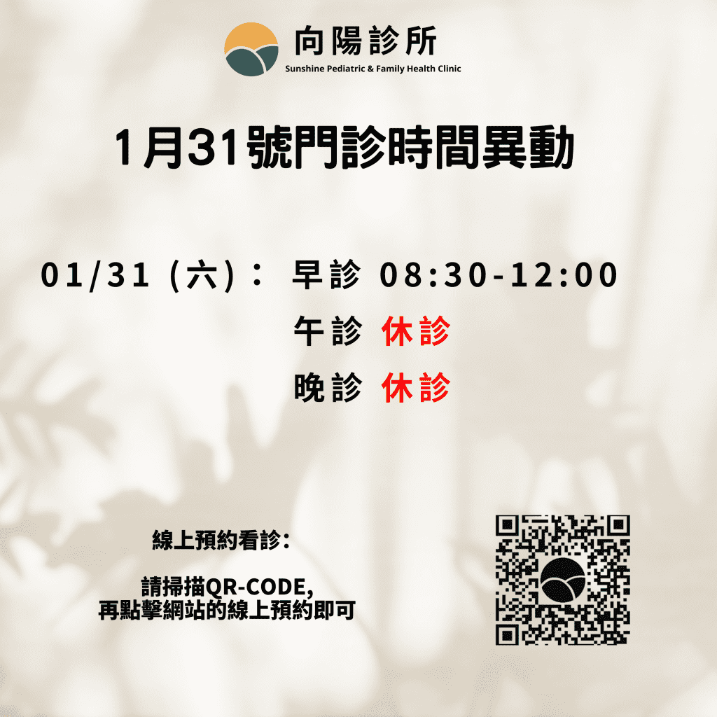 【休診公告】1月31號(星期六)午診休診