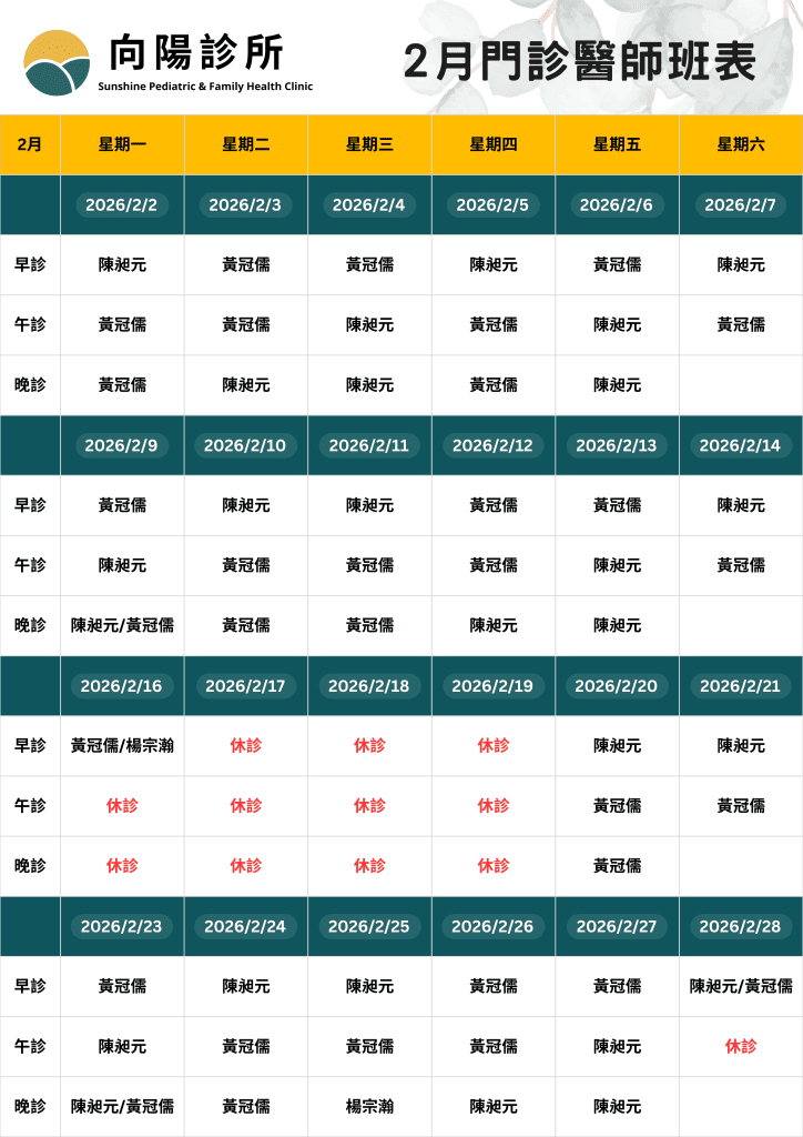 【醫師班表】2月醫師班表